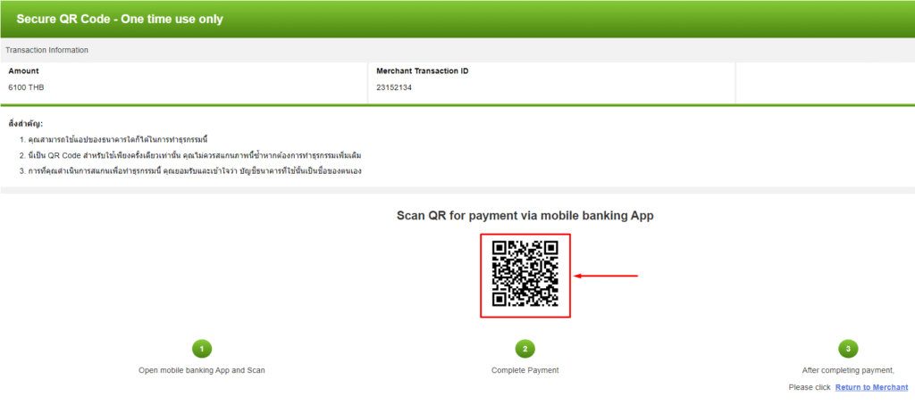 - ในตัวอย่างนี้จะทำการฝากเงินผ่านช่องทาง Thai Mobile Banking QR Code