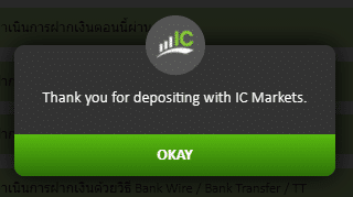 ยินดีด้วย!! มาถึงขั้นตอนนี้ท่านได้ฝากเงินเข้าบัญชีซื้อขายของท่านเรียบร้อยแล้ว