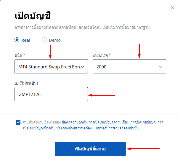 - ให้ท่านเลือกประเภทบัญชีเป็น “Real”