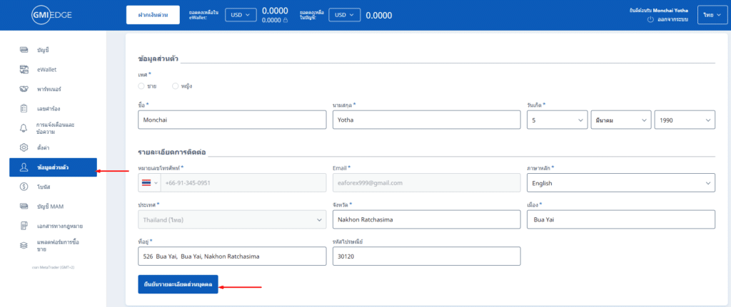 - แล้วคลิกที่ปุ่ม “ยืนยันรายละเอียดส่วนบุคคล”