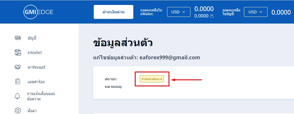 ยินดีด้วยคุณทำการยืนยันตัวตนเสร็จเรียบร้อยแล้ว ต่อไปก็รอเจ้าหน้า GMIEDGE ทำการตรวจสอบข้อมูลและอนุมัติการยืนยันตัวตน ก็เสร็จสิ้นสมบูรณ์