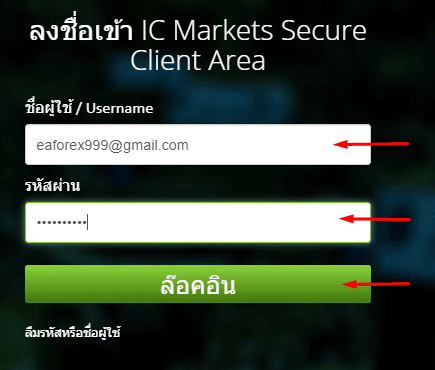 - จะพบกับ Username และ Password ที่ทาง IC Markets ได้ส่งมาให้