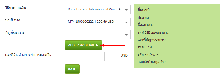 ให้ท่านกรอกรายละเอียดบัญชีธนาคารที่ท่านต้องการใช้ในการถอนเงิน